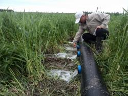 در این پژوهش از روش آبیاری یک درمیان شیارها با استفاده از لولههای دریچهدار استفاده شد. استفاده از لولههای دریچهدار در مقایسه با روشهای مرسوم آبیاری، ضمن صرفهجویی در آب مصرفی کنترل و راهبری آن نیز بسیار سادهتر و نوعی ترویج و انتقال این تکنولوژی در سطح مزارع است. این طرح تحقیقی- ترویجی برای انتقال دانش آن در سطح مزارع با هدف استفاده از روش کمآبیاری برای افزایش بهرهوری آب در گندم و همچنین صرفه جویی در منابع آب مورد بررسی قرار گرفت. در این طرح سه تیمار آبیاری کامل، آبیاری یک درمیان شیارها و دیم روی گندم مورد بررسی قرار گرفت. بطور متوسط در تیمار دیم، با صرفه جویی حدود 1850 متر مکعب در هکتار عملکرد گندم در حدود 1000 کیلوگرم در هکتار و در تیمار کم آبیاری با صرفه جویی 900 مترمکعب آب در هکتار عملکرد گندم در حدود 560 کیلوگرم در هکتار نسبت به تیمار آبیاری کامل کاهش داشت. اگرچه آب آبیاری نسبت به تیمار کم آبیاری و دیم موجب افزایش عملکرد شده است ولی اثربخشی لازم را از نظر بهرهوری آب نداشته است. متوسط بهرهوري آب کاربردی در شرايط آبياری کامل و کم آبیاری به ترتیب معادل 1/15 و 1/45 و در شرايط ديم برابر 1/85 کيلوگرم به ازاي هر متر مکعب آب به دست آمد. به عبارت دیگر ارزش آب صرفهجویی شده، فرصتهای جدید بهتری از نظر تغذیه سفرهها و یا استفاده برای گیاهان تابستانه بوجود می آورد. نتایج برآورد بهره وری اقتصادی آب نشان داد که درآمد حاصل از یک مترمکعب آب در تیمارهای دیم و کم آبیاری بیشتر از تیمار آبیاری کامل است. در نتیجه در شرایط مشابه استان گلستان (وجود بارش بیش از 200 میلی متر در فصل رشد)، توصیه به کاربرد کم یا عدم آبیاری مزارع گندم است. البته در سال های خیلی خشک بطوریکه آبیاری اثربخشی لازم را در تولید و در نتیجه در بهره وری فیزیکی و اقتصادی داشته باشد، عدم آبیاری توصیه نمی گردد. ولی استفاده از سناریوی آبیاری یک درمیان شیارها با ضریب اطمینان بالایی برای شرایط کم آب ایران قابلیت کاربرد را دارد.