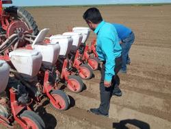 شکل 1- کاشت مکانیزه بادامزمینی با بذرکارهای مختلف