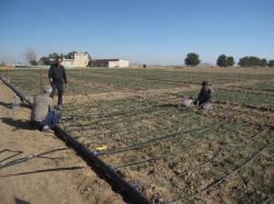مجریان این پژوهش محمد جلینی- حمیدرضا شریفی بودند که به صورت آزمایش کرتهای خرد شده در قالب طرح بلوکهای کامل تصادفی با سه تکرار در مرکز تحقیقات و آموزش کشاورزی و منابع طبیعی خراسان رضوی (ایستگاه تحقیقات گناباد) در سالهای زراعی 1402-1399 انجام شد. در این تحقیق تیمار روش آبیاری (شامل روشهای کرتی، قطرهای (نوار تیپ) و بارانی (پیفلکس) در کرت اصلی و سطوح مختلف آب آبیاری (شامل تامین 100، 75 و 50 درصد نیاز آبی) در کرت فرعی قرار داشتند و هدف از انجام آن تاثیر روشها و سطوح مختلف آب آبیاری روی خوصیات کمی و کیفی زعفران بود. نتایج نشان داد تغییر روش آبیاری از کرتی به بارانی (پیفلکس) در سالهای مورد مطاله (1399، 1400، 1401 و 1402) به ترتیب سبب 64، 220، 184 و 238 درصد افزایش در عملکرد خشک کلاله در مترمربع و 83، 240، 220 و 260 درصد افزایش در بهرهوری آب گردید. همچنین بالاترین مقادیر صفات اندازگیری شده با تامین 100 درصد نیاز آبی به دست آمده و کاهش تامین نیاز آبی زعفران از 100 به 50 درصد در سالهای 1399، 1400، 1401 و 1402 به ترتیب موجب 17، 31، 37 و 46 درصد کاهش در عملکرد خشک کلاله شده و بهره وری آب در این سالها به میزان 41، 36، 24 و 10 درصد افزایش یافت.