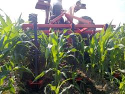 ساختمان دستگاه شامل اتصال سه نقطه، شاسی اصلی، بازوهای رابط با قابلیت تنظیم ارتفاع، بازوی اصلی، تیغه های خاکورز و سیستم ایمنی فنری است. دستگاه سه رديفه سوار بوده و شاسي آن قابلیت تغییر ارتفاع از 60 تا 120 سانتی متر را دارا می باشد. ساختار شاسی امکان افزایش عرض کار، نصب کودکار و سم پاش را نیز فراهم می کند و در این صورت دستگاه قادر خواهد بود سه عملیات را به طور همزمان انجام دهد. تحلیل نیرویی دستگاه توسط نرم افزار کامپیوتری و ارزیابی آن در مزرعه ذرت با ارتفاع محصول 110 سانتی متر، نشان داد که ابعاد و شکل در نظر گرفته شده با حداقل فولاد به کار رفته دارای مقاوت و استحکام بالایی است و در شرایط مختلف محصول، امکان وجین و خاکدهی پای بوته را دارد.